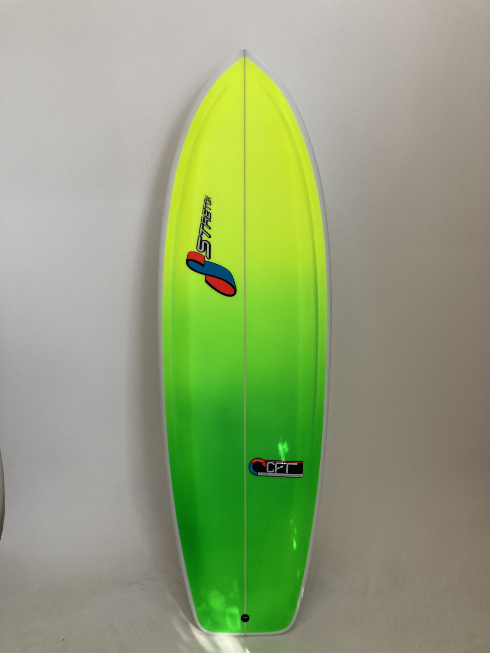 Mr. Buzz is fin sensitive and likes experimentation but keep in mind that it is designed to be ridden as quad only. Recommended fins are full aspect ratio, large surface area, raked front fins from 4.625 to 5.25. Rider style and preference can vary but most everyone will benefit from normal sized symmetrical rears from 4.0 to 4.375. The signature BUZZ quad set designed and sold exclusively by Stretch is the optimum choice to get you started.